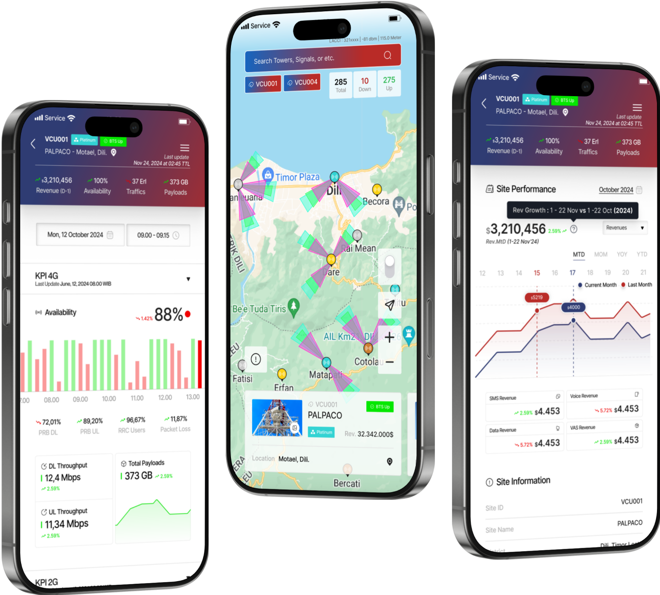 This MVP equips Telkomcel with a high-level, real-time overview of its network’s health and operational metrics, enabling swift responses to any performance or availability issues. By covering essential KPIs, site data, power, and alarm monitoring.